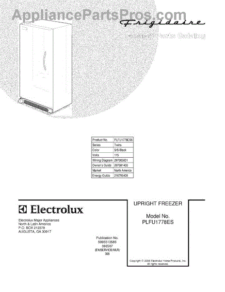 Parts for Frigidaire PLFU1778ES6: 01 - Cover Parts