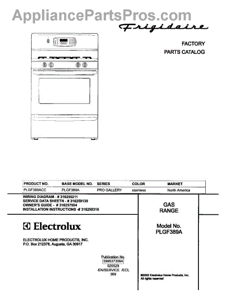 Parts for Frigidaire PLGF389ACC: 01 - Cover Parts