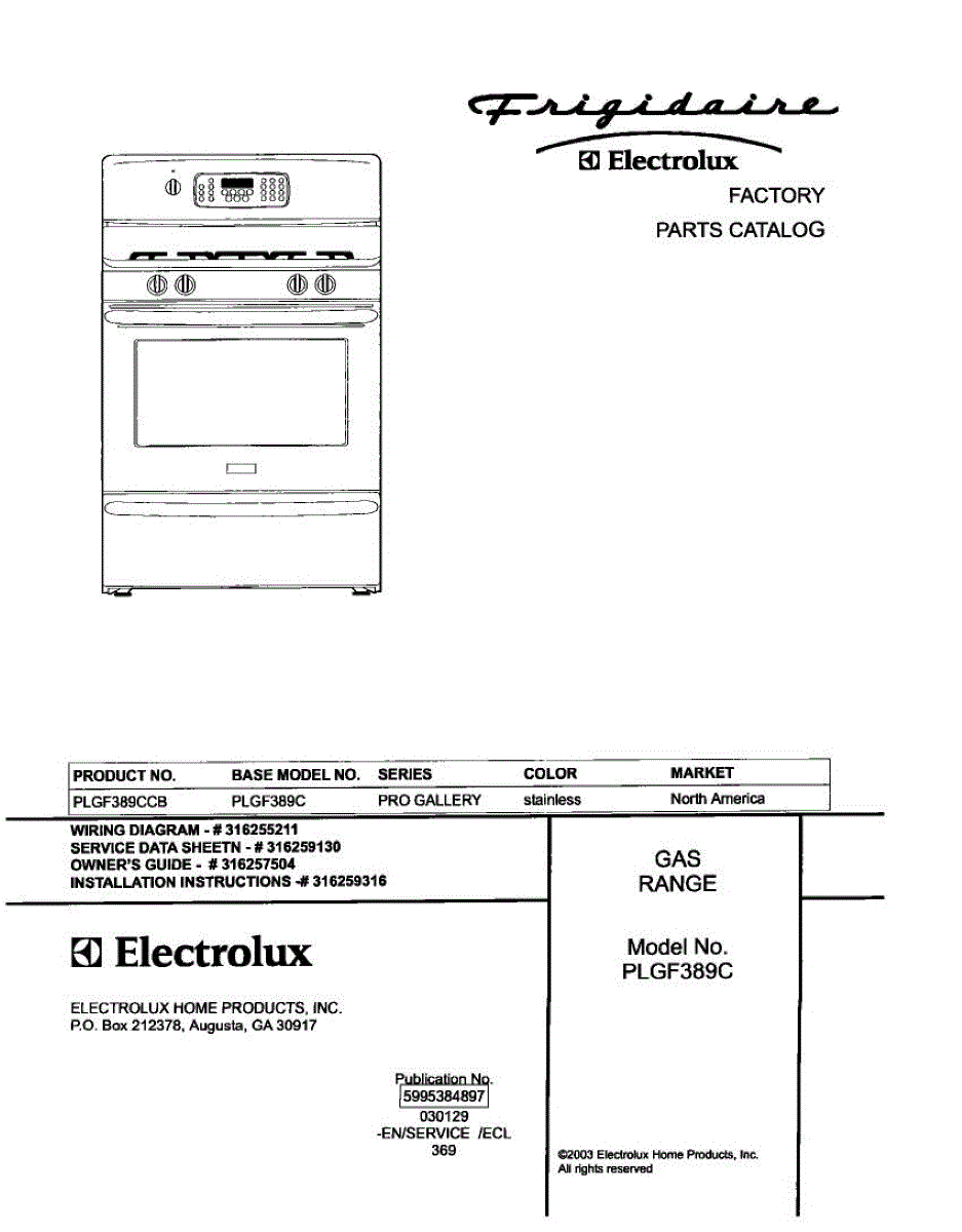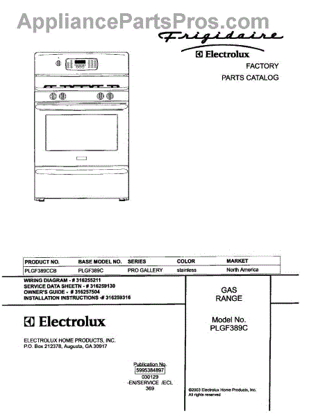 Parts for Frigidaire PLGF389CCB: 01 - Cover Parts