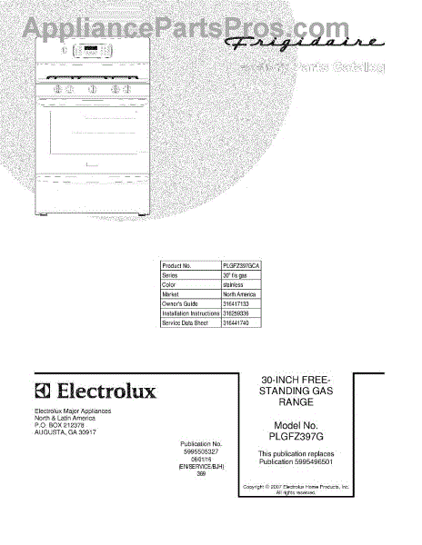 Parts for Frigidaire PLGFZ397GCA: 01 - Cover Parts