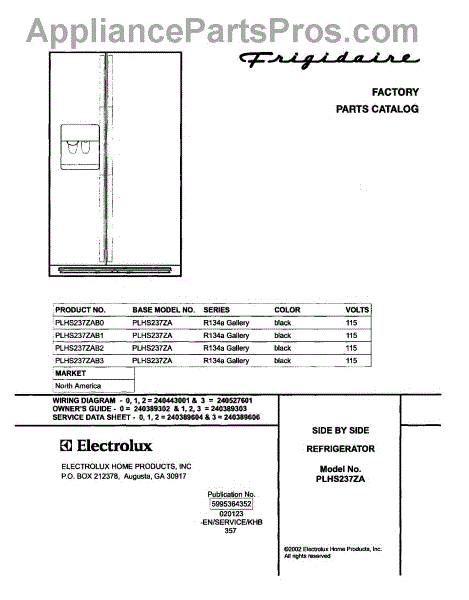 Parts for Frigidaire PLHS237ZAB0: 01 - Cover Parts