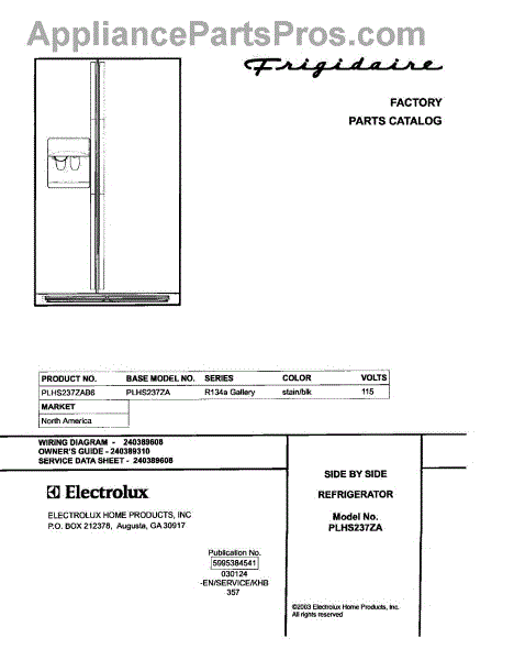 Parts for Frigidaire PLHS237ZAB6: 01 - Cover Parts