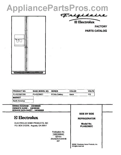 Parts for Frigidaire PLHS238ZCB0: 01 - Cover Parts