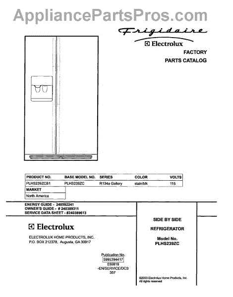 Parts for Frigidaire PLHS239ZCB1: 01 - Cover Parts
