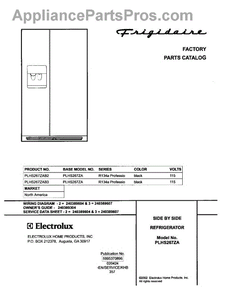 Parts for Frigidaire PLHS267ZAB2: 01 - Cover Parts