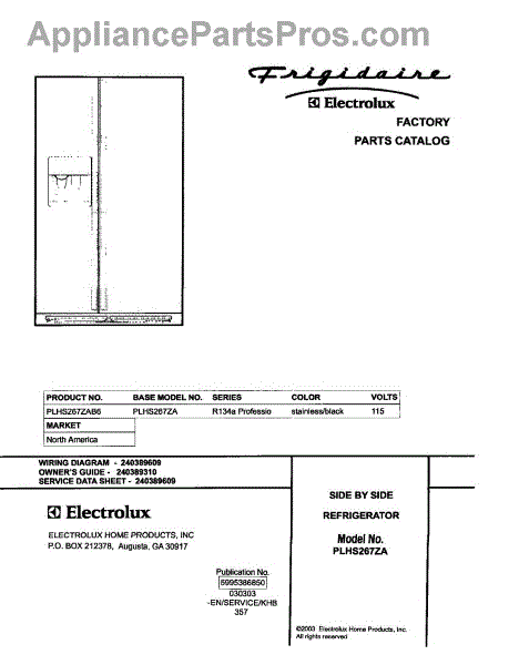 Parts for Frigidaire PLHS267ZAB6: 01 - Cover Parts
