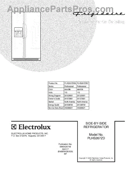 Parts for Frigidaire PLHS267ZDB6: 01 - Cover Parts