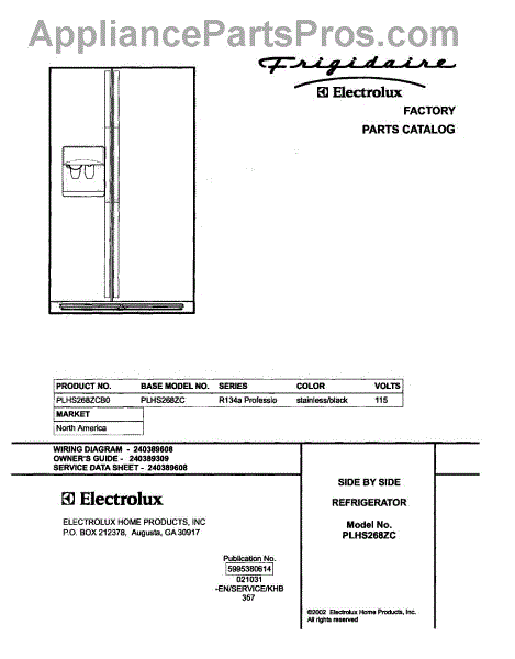 Parts for Frigidaire PLHS268ZCB0: 01 - Cover Parts