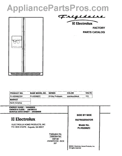 Parts for Frigidaire PLHS268ZCB1: 01 - Cover Parts