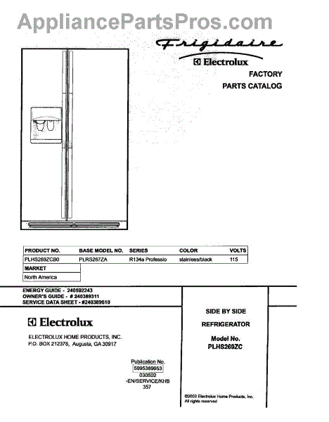 Parts for Frigidaire PLHS269ZCB0: 01 - Cover Parts
