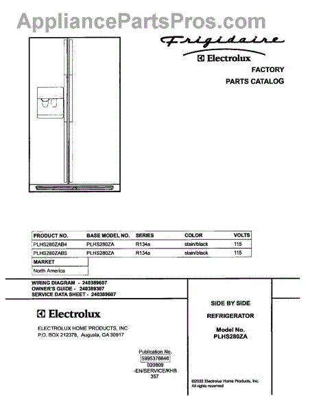 Parts for Frigidaire PLHS280ZAB4: 01 - Cover Parts