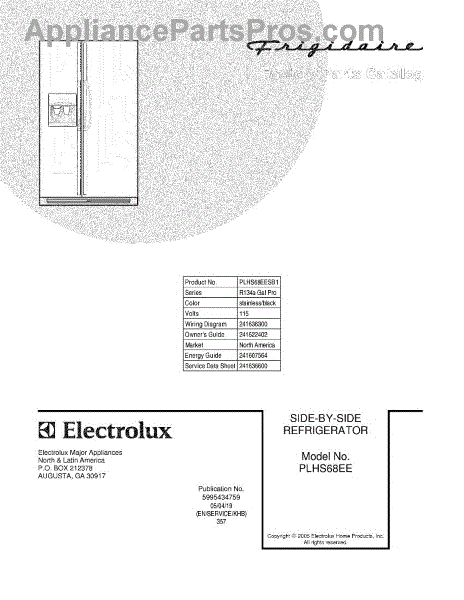 Parts for Frigidaire PLHS68EESB1: 01 - Cover Parts