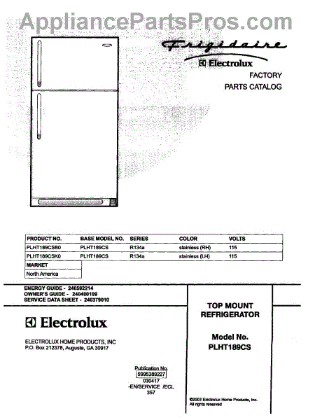 Parts for Frigidaire PLHT189CSB0: 01 - Cover Parts