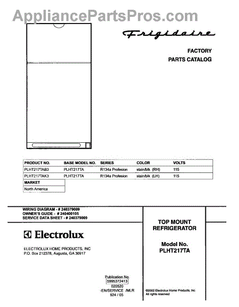 Parts for Frigidaire PLHT217TAB3: 01 - Cover Parts