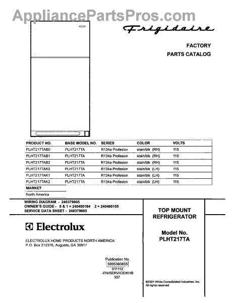 Parts for Frigidaire PLHT217TAK1: 01 - Cover Parts