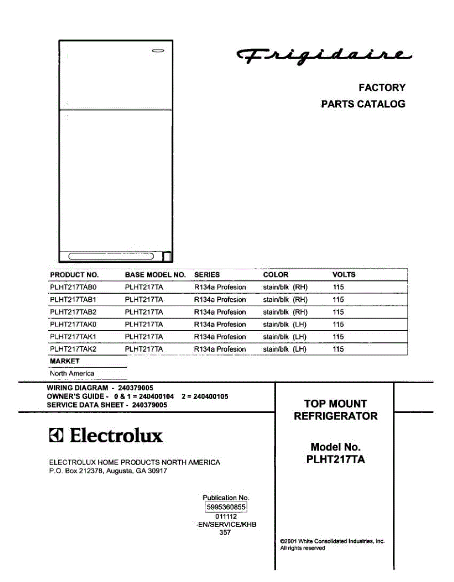 Parts for Frigidaire PLHT217TAK2: 01 - Cover Parts