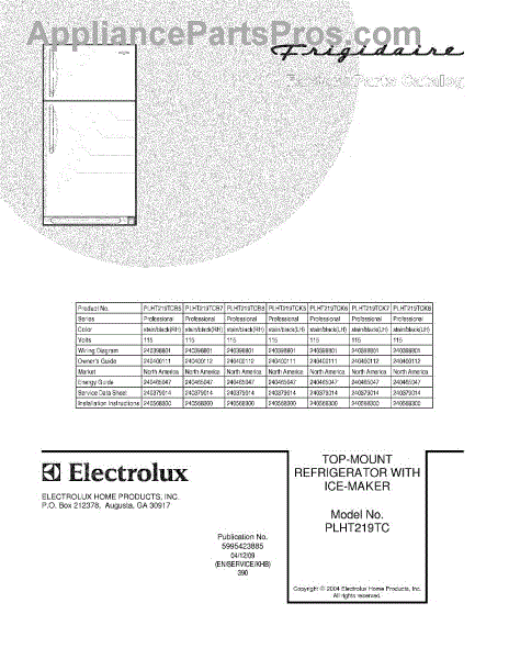 Parts for Frigidaire PLHT219TCK5: 01 - Cover Parts