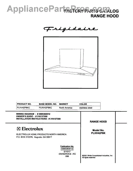 Parts for Frigidaire PLHV42P8KC: 01 - Cover Parts