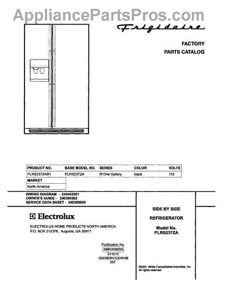 Parts for Frigidaire PLRS237ZAB1: 01 - Cover Parts