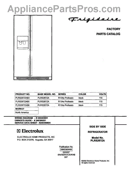 Parts for Frigidaire PLRS267ZAB5: 01 - Cover Parts