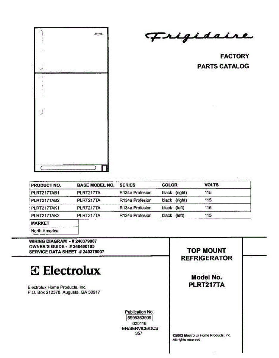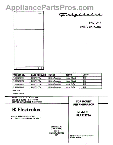 Parts for Frigidaire PLRT217TAB2: 01 - Cover Parts