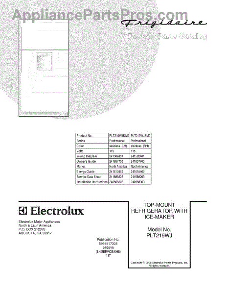 Parts for Frigidaire PLT219WJSM0: 01 - Cover Parts
