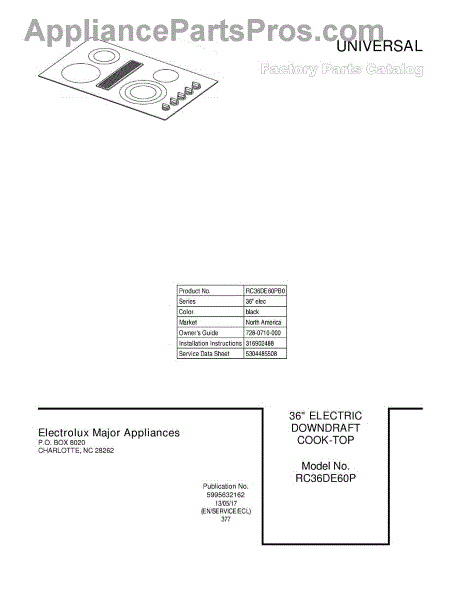 Parts for Frigidaire RC36DE60PB0: 01 - Cover Parts