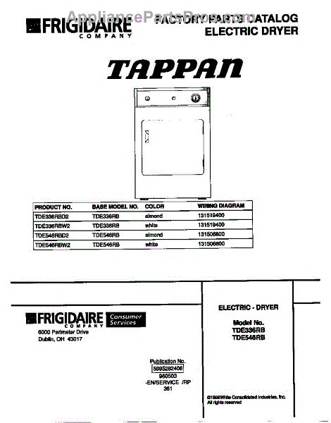 Parts for Frigidaire TDE336RBD2: 01 - Cover Parts