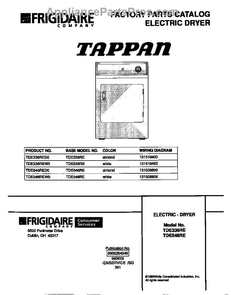 Parts for Frigidaire TDE336RED0: 01 - Cover Parts