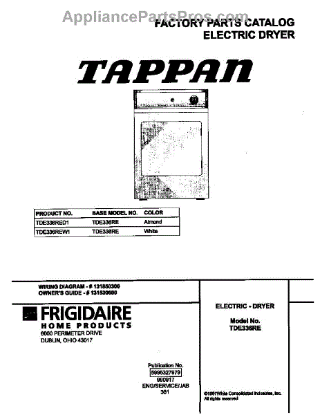 Parts for Frigidaire TDE336RED1: 01 - Cover Parts