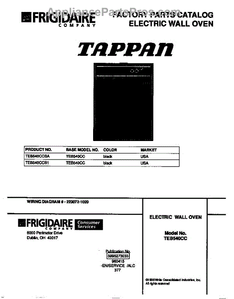 Parts for Frigidaire TEB540CCB1: 01 - Cover Parts