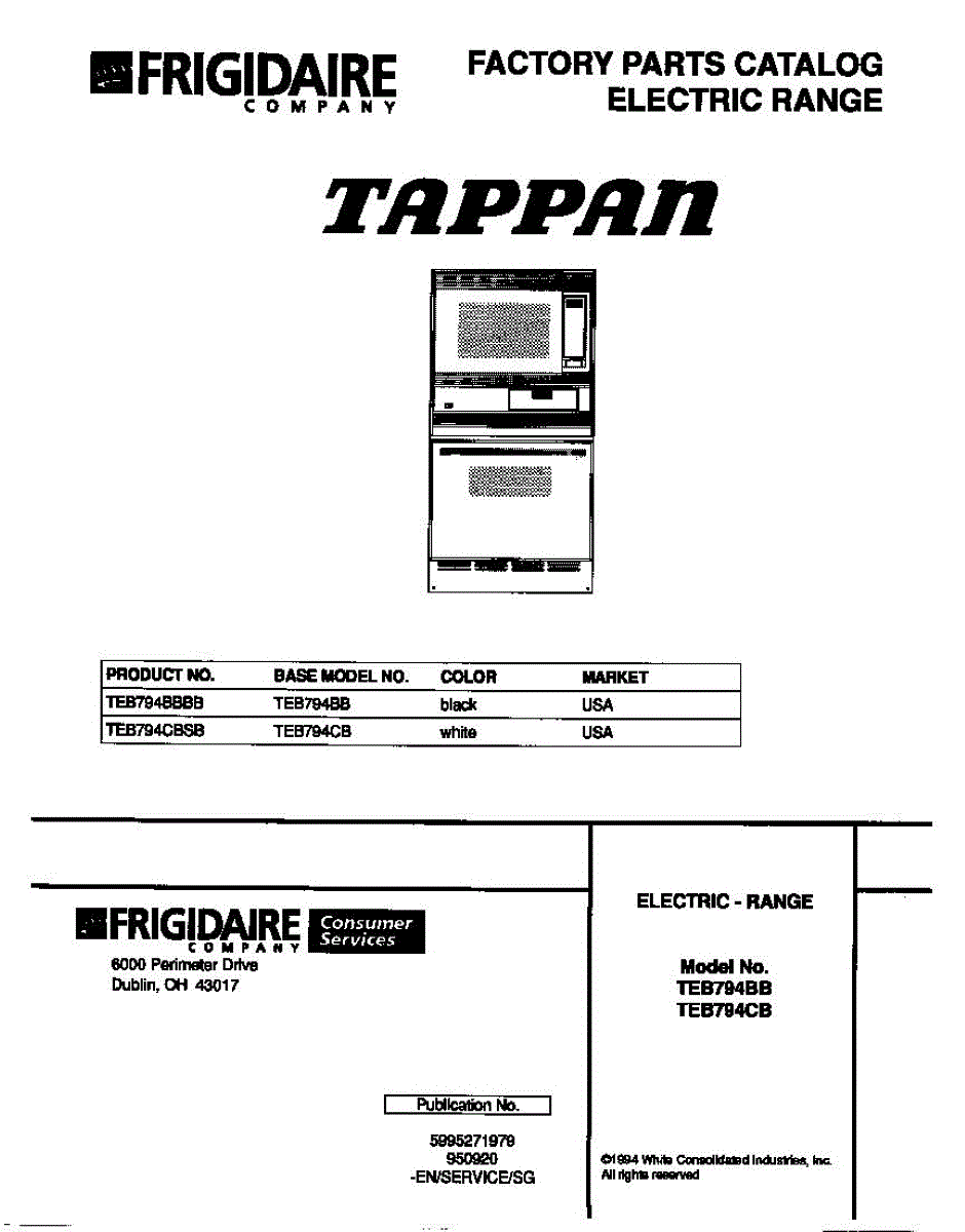 Parts for Frigidaire TEB794BBBB: 01 - Cover Parts