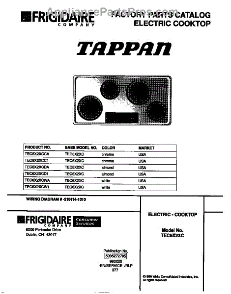 Parts for Frigidaire TEC6X2XCW1: 01 - Cover Parts
