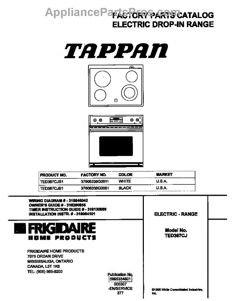 Parts for Frigidaire TED367CJB1: 01 - Cover Parts