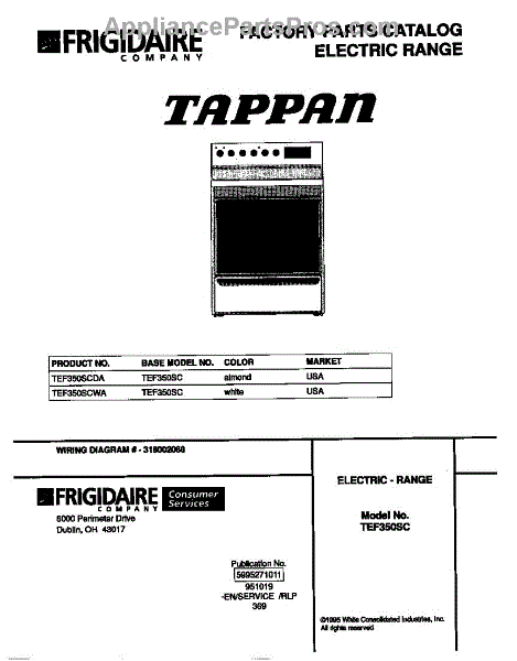Parts for Frigidaire TEF350SCDA: 01 - Cover Parts