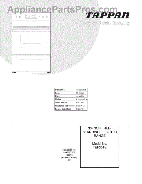 Parts for Frigidaire TEF351EWN: 01 - Cover Parts