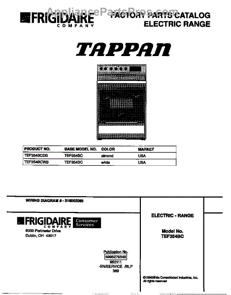 Parts for Frigidaire TEF354BCDB: 01 - Cover Parts