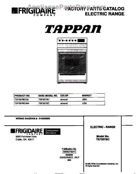 Parts for Frigidaire TEF357BCDA: 01 - Cover Parts