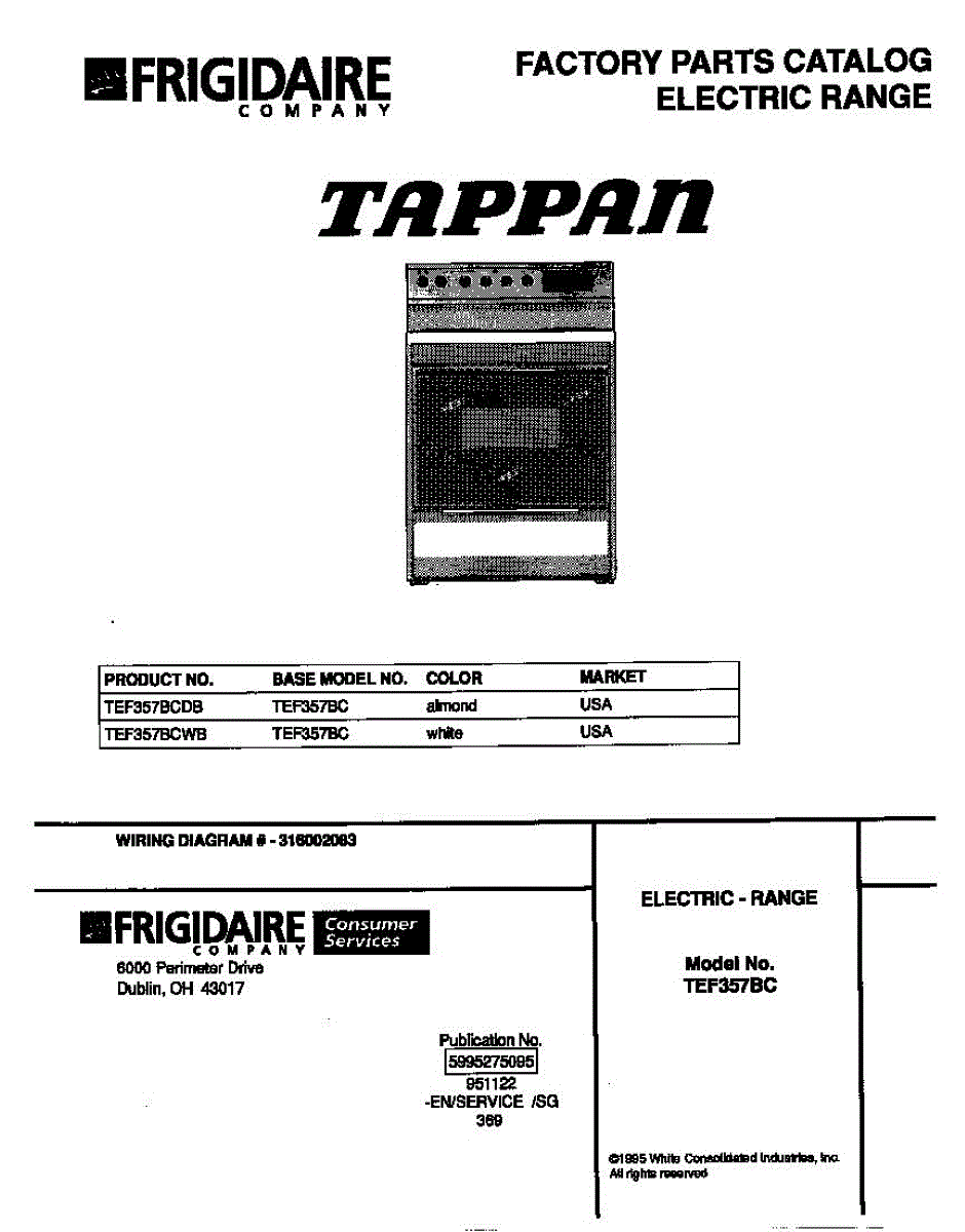 Parts for Frigidaire TEF357BCDB: 01 - Cover Parts