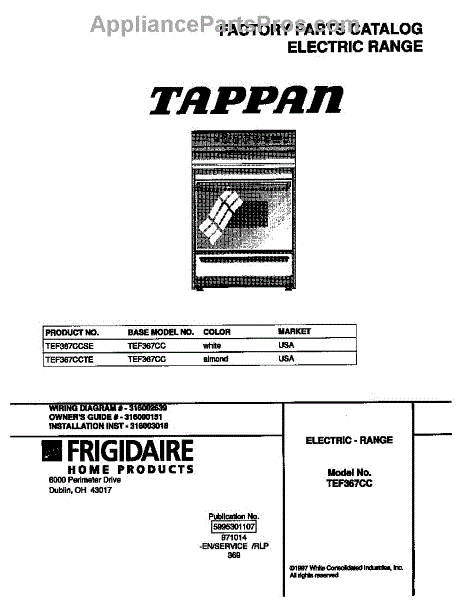 Parts for Frigidaire TEF367CCSE: 01 - Cover Parts