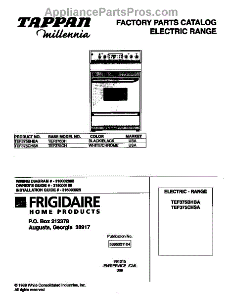 Parts for Frigidaire TEF375BHBA: 01 - Cover Parts