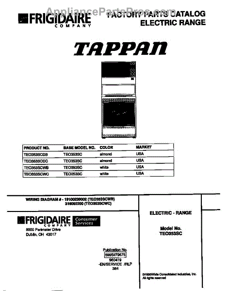 Parts for Frigidaire TEO353SCWB: 01 - Cover Parts
