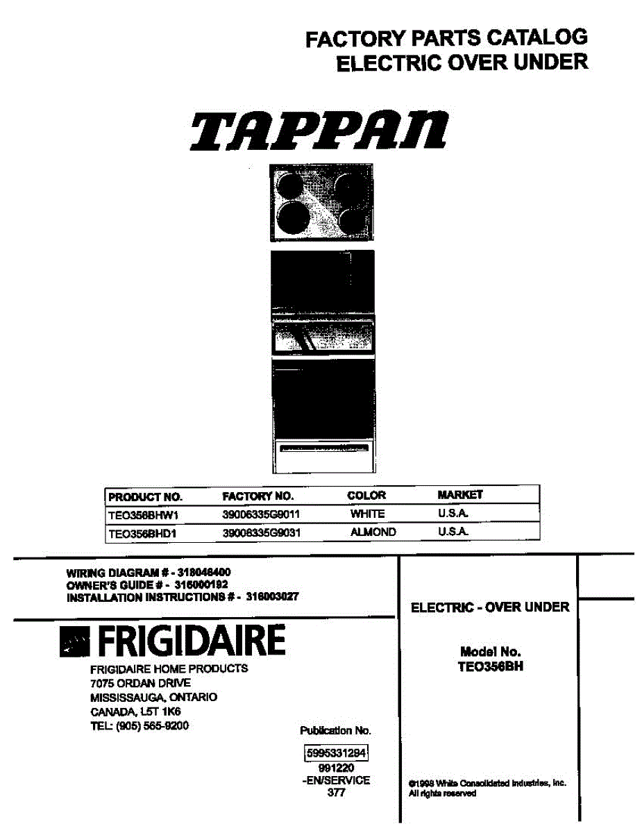 Parts for Frigidaire TEO356BHW1: 01 - Cover Parts