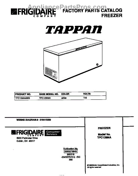Parts for Frigidaire TFC13M4AW3: 01 - Cover Parts