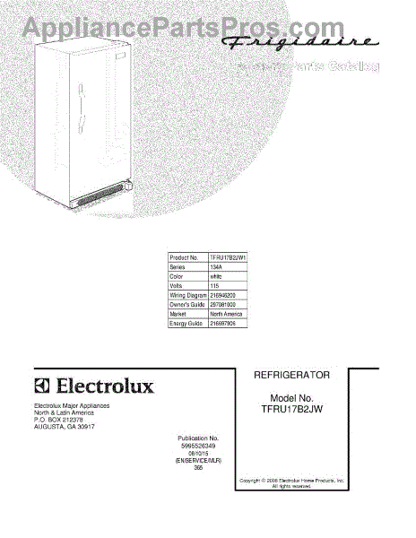 Parts for Frigidaire TFRU17B2JW1: 01 - Cover Parts