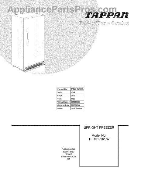 Parts for Frigidaire TFRU17B2JWC: 01 - Cover Parts
