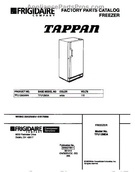 Parts for Frigidaire TFU12M0AW4: 01 - Cover Parts