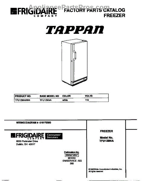 Parts for Frigidaire TFU12M4AW4: 01 - Cover Parts