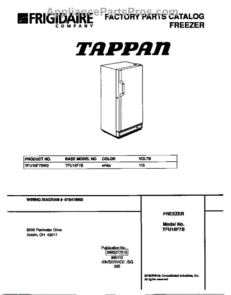 Parts for Frigidaire TFU16F7BW2: 01 - Cover Parts