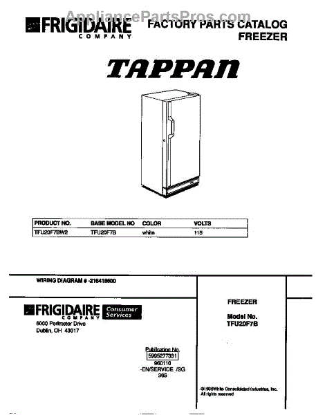 Parts for Frigidaire TFU20F7BW2: 01 - Cover Parts